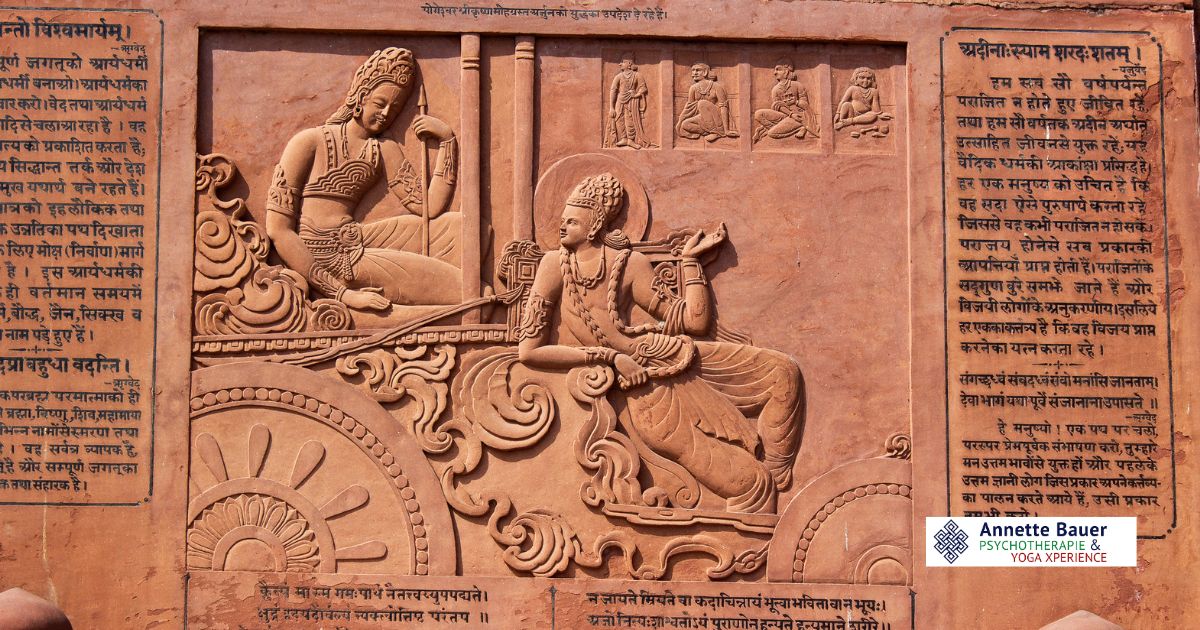 Arjuna sitz da also auf dem Schlachtfeld, fühlt sich ohnmächtig angesichts der bevorstehenden Aufgabe. Er ist überwältigt und handlungsunfähig. Die Lehre der Bhagavad Gita besagt: Wenn wir uns ohnmächtig fühlen, müssen wir wieder ins Fühlen und Handeln kommen. Krishna erläuter ihm das in vier Schritten, also verschiedenen Yoga-Wege oder Ansätze: